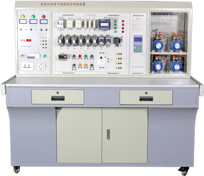 機(jī)床電氣控制技能實(shí)訓(xùn)考核裝置是按照勞動(dòng)和社會(huì)保障部頒發(fā)的"工人等級(jí)標(biāo)準(zhǔn)"和"職業(yè)技能鑒定"規(guī)范要求,結(jié)合工廠生產(chǎn)實(shí)際和職業(yè)崗位的技能要求,按照職業(yè)教育和實(shí)訓(xùn)考核特點(diǎn)而設(shè)計(jì)的產(chǎn)品。其適合高等職業(yè)學(xué)校、中等職業(yè)學(xué)校的機(jī)電設(shè)備安裝與維修、機(jī)電技術(shù)應(yīng)用、機(jī)床電路維修等課程的實(shí)訓(xùn)與考核,也適合技工學(xué)校機(jī)電類專業(yè)《電氣設(shè)備維修》課程的實(shí)習(xí)、安裝,維修電工技師班培訓(xùn)和實(shí)操。