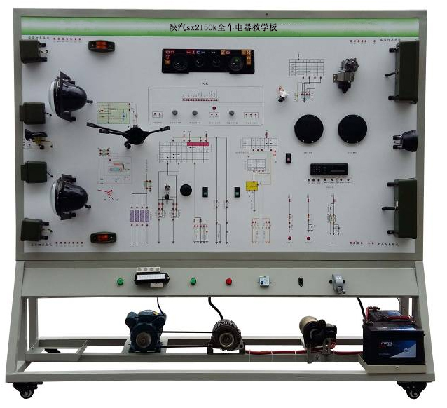 陜汽sx2150k全車電器教學(xué)板該設(shè)備采用全新陜汽sx2150k柴油機(jī)整車電器實(shí)物為基礎(chǔ),充分展示汽車儀表系統(tǒng)、燈光系統(tǒng)、雨刮系統(tǒng)、喇叭系統(tǒng)、發(fā)動(dòng)機(jī)電器系統(tǒng)、起動(dòng)系統(tǒng)和充電系統(tǒng)等汽車電器各系統(tǒng)的組成結(jié)構(gòu)和工作過程。