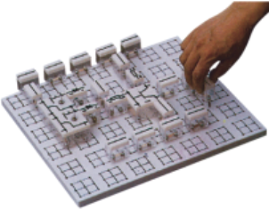 實(shí)訓(xùn)桌一桌兩座,實(shí)訓(xùn)桌中央配有通用九孔萬(wàn)能插件板(尺寸:35cm×90cm ),九孔萬(wàn)能插件板主體由ABS注塑而成,表面布有九孔成一組相互聯(lián)通的插孔,九孔萬(wàn)能插件板內(nèi)部?jī)?nèi)嵌126組銅質(zhì)九孔一體成型嵌件(共有1134孔)。實(shí)訓(xùn)中的弱電模塊必須以獨(dú)立封裝的透明元件盒為單一模塊,元件盒統(tǒng)一都能配合九孔萬(wàn)能插件板像搭積木一樣的形式自由搭建組合電路;元件盒盒體透明,內(nèi)裝元件直觀性好,盒蓋印刷電路圖防刮耐磨,符號(hào)美觀清晰。元件盒盒體與盒蓋采用較科學(xué)的壓卡式結(jié)構(gòu),維修拆裝方便。每張臺(tái)桌配有一粒膠皮板,保護(hù)通用底板與桌面(如需在桌上放置電動(dòng)機(jī)、焊接等)。