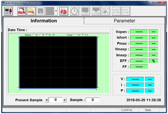 高分辨率全局測(cè)試曲線顯示,自動(dòng)連續(xù)測(cè)試功能。被測(cè)組件的伏安特性細(xì)節(jié)特征、環(huán)境信息和校準(zhǔn)組件信息一目了然,并提供數(shù)據(jù)保存、讀取與傳輸功能。提供更高采樣率選擇功能。