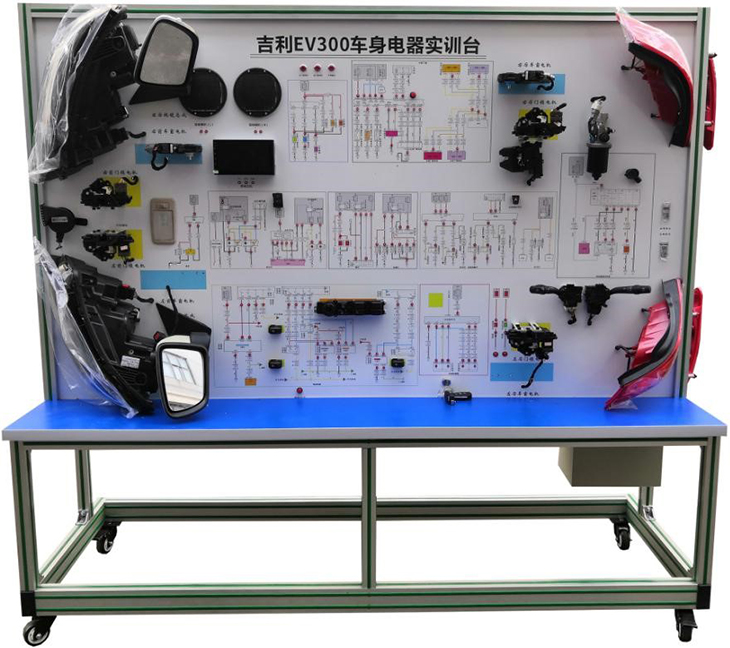 電動(dòng)汽車整車電器實(shí)訓(xùn)設(shè)備采用(全新吉利EV300)純電動(dòng)汽車車身電器系統(tǒng)實(shí)物為基礎(chǔ),充分展示純電動(dòng)汽車儀表系統(tǒng)、燈光系統(tǒng)、雨刮系統(tǒng)、喇叭系統(tǒng)、低壓電源電器系統(tǒng)、電動(dòng)車窗系統(tǒng)、電動(dòng)門鎖、音響系統(tǒng)等低壓電器系統(tǒng)的組成結(jié)構(gòu)和工作過程。適合于各類院校對(duì)純電動(dòng)車車身電器系統(tǒng)理論和維修實(shí)訓(xùn)的拆裝與維護(hù)、結(jié)構(gòu)與原理認(rèn)知、系統(tǒng)操作、功能動(dòng)態(tài)演示、故障檢測(cè)與診斷教學(xué)需要。