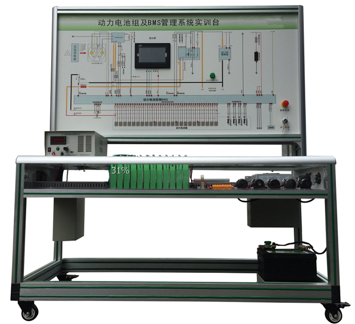選用新能源車輛磷酸鐵鋰 動(dòng)力電池包,單體電池(3.2V20AH,共24串),帶CAN總線的一體機(jī)BMS電池管理系統(tǒng),有被動(dòng)均衡功能;真實(shí)地呈現(xiàn)了磷酸鐵鋰動(dòng)力電池包核心零部件之間的連接控制關(guān)系、安裝位置和運(yùn)行參數(shù),以及高壓系統(tǒng)安全注意事項(xiàng),并培養(yǎng)學(xué)員對(duì)磷酸鐵鋰動(dòng)力電池包(BMS)故障分析和處理能力。適用于了解與驗(yàn)證電動(dòng)汽車的動(dòng)力電池參數(shù)進(jìn)行實(shí)時(shí)監(jiān)控、故障診斷、SOC估算、短路保護(hù)、絕緣檢測、充放電控制、均衡等功能,并通過CAN總線的方式與帶CAN通訊的車載充電機(jī)進(jìn)行信息交互,保障電動(dòng)汽車高效、可靠、安全運(yùn)行的BMS教學(xué)實(shí)訓(xùn)實(shí)驗(yàn)。