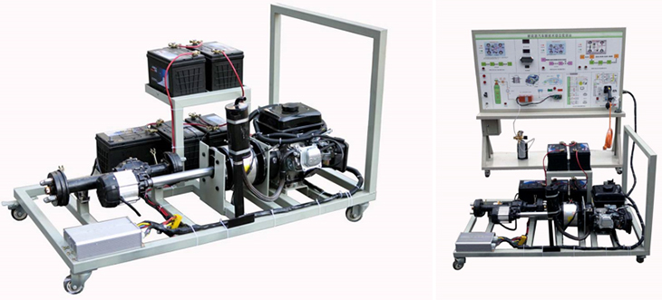 發(fā)電機(jī)、發(fā)動(dòng)機(jī)、燃料電池及運(yùn)行附件、電池組、逆變器、三相交流電機(jī)、傳動(dòng)機(jī)構(gòu)、制動(dòng)機(jī)構(gòu)、故障模擬與考核裝置、檢測(cè)面板與可移動(dòng)臺(tái)架等組成。