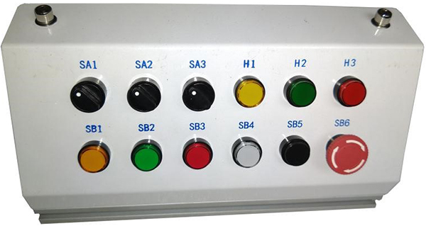 提供6路輸入、6路輸出等接口,輸入、輸出端電壓可自由切換0V和24V,輸出端由指示燈的亮滅來指示PLC輸出口的狀態(tài),面板印有清晰的說明和端口絲印。通過基本指令練習(xí),讓學(xué)生掌握PLC輸入、輸出的外圍接線和工作原理。