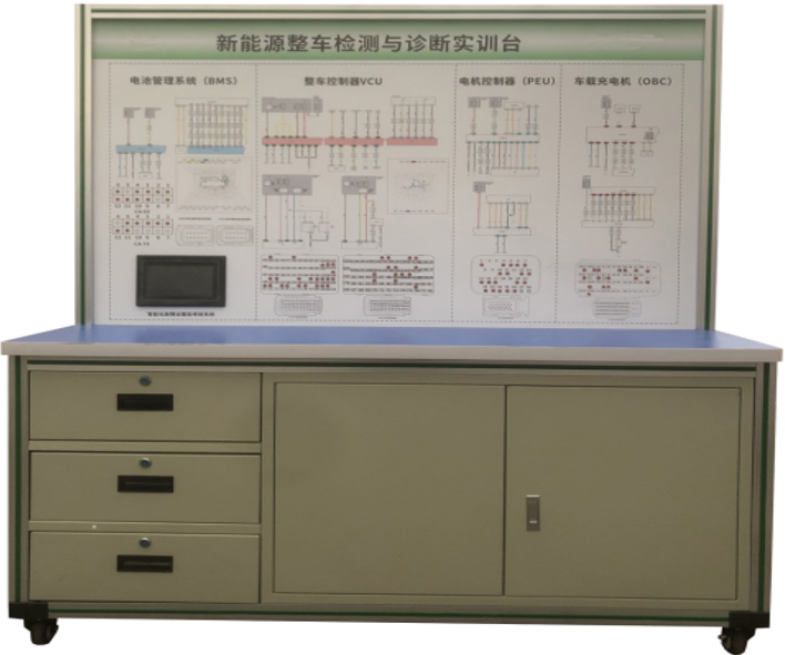 采用純電動汽車原車插接器實物制作,無損原車部件與線束,包括電機控制MCU、電池電控BMS、VCU控制、車載充電系統(tǒng)插接器及專用線束,通過專用線束與車輛連接,可直接在檢測臺面板上檢測系統(tǒng)電路元件的電信號,如電阻、電壓、電流、頻率信號等,可完成電動汽車整車控制及驅(qū)動傳動系統(tǒng)(電機控制MCU、電池電控BMS、VCU控制、車載充電系統(tǒng))相關(guān)的實驗實訓(xùn)內(nèi)容。