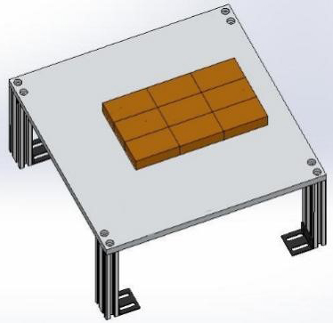 本單元由鋁板和鋁型材組合制成,尺寸為300*200*150mm;碼垛料塊為尼龍材質外形尺寸為80*40*20,可根據(jù)實驗要求碼垛多種形式。