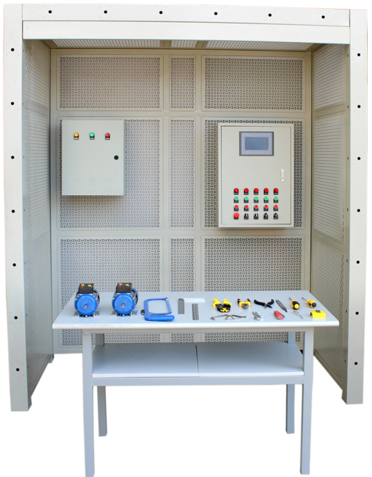 本設(shè)備可進(jìn)行電工安裝。如橋架安裝、PVC管安裝、吊燈、白熾燈座、日光燈、開關(guān)、插座、配電箱、控制箱等,裝置還包含有交流異步電動(dòng)機(jī)、直流電動(dòng)機(jī)、步進(jìn)電機(jī)、伺服電機(jī)、溫度控制器、電偶、PLC、變頻器觸摸屏、消防聯(lián)動(dòng)、防盜報(bào)警、視頻監(jiān)控等控制與受控對(duì)象。該系統(tǒng)每個(gè)操作組配套一可移動(dòng)式工具車和元件柜,便于對(duì)元件的保管和安裝施工。從根本上解決了學(xué)校在普通墻面上進(jìn)行的安裝培訓(xùn)的使用不方便、實(shí)訓(xùn)范圍窄的問題