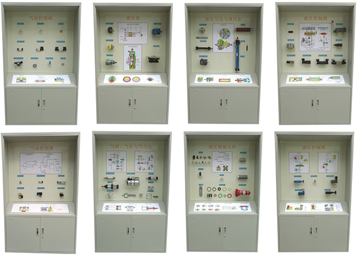 氣動液壓陳列柜,氣動液壓示教陳列柜,透明液壓PLC控制實(shí)訓(xùn)臺、氣動PLC控制實(shí)訓(xùn)臺、智能化液壓伺服控制系統(tǒng)實(shí)驗(yàn)裝置、挖掘機(jī)液壓系統(tǒng)實(shí)訓(xùn)裝置、液壓元件拆裝實(shí)訓(xùn)臺是《液壓與氣壓傳動》課程的實(shí)驗(yàn)場所,承擔(dān)機(jī)械控制及其自動化、船舶與海洋工程、電氣工程及