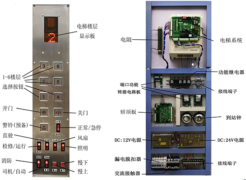 教學電梯的電氣控制系統(tǒng)是采用PLC和交流變頻調速控制,其硬件結構的組成及功能與實際電梯完全一樣,具有自動平層、自動開關門、順向響應轎內外呼梯信號、直駛、電梯安全運行保護等功能,以及電梯停用、急停、檢修、慢上、慢下、照明和風扇等特殊功能。