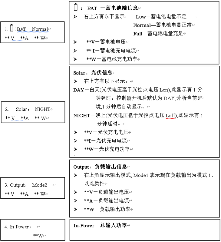Ø 系統(tǒng)工作狀況、蓄電池的剩余電量等的變化;