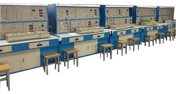 本實訓裝置主要由電源控制屏、實訓桌、電工電子透明實訓模塊、實訓連接線等組成。