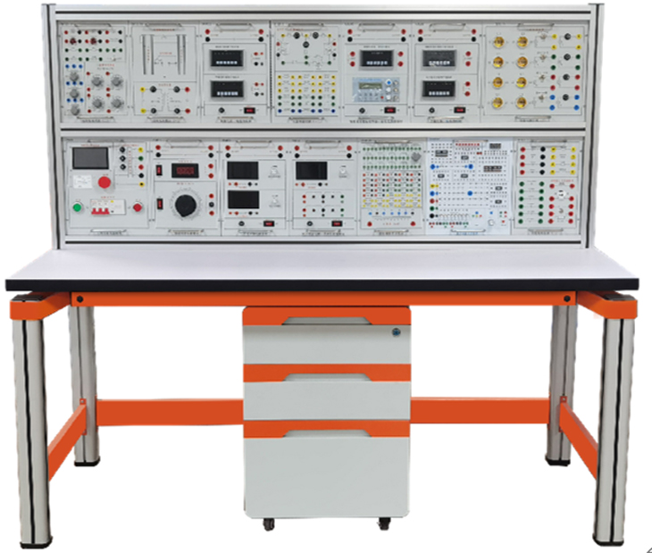 網(wǎng)絡(luò)化基礎(chǔ)電工實驗平臺由實驗桌、實驗臺架、存儲柜、實驗掛箱組件、配件等組成。