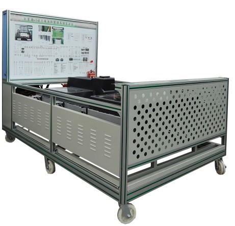 鋰動力電池組、電池管理系統(tǒng)BMS、維修開關(guān)、輔助蓄電池(12V45AH)、高壓配電箱、漏電傳感器、車載充電機、國標充電插座與充電槍、直流接觸器(包含充電繼電器、總正繼電器、總負繼電器、預充繼電器)、急停開關(guān)與電源總開關(guān)、一體化全鋁合金型材搭建的移動臺架(1500×700×1700mm