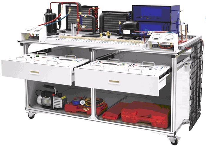 1.該裝置集制冷空調系統(tǒng)安裝、冰箱系統(tǒng)安裝、制冷系統(tǒng)電接線、壓力檢漏、抽真空、 充注制冷劑與運行調試于一體,包含了制冷系統(tǒng)維修的全部步驟,能滿足實訓教學、實際工程訓練及職業(yè)技能競賽的需要。