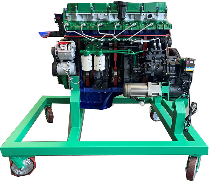 中型高機(jī)動車輛發(fā)動機(jī)解剖實(shí)訓(xùn)臺、該設(shè)備采用翻新CTM134中型高機(jī)動車輛CA6DL2-35E3R發(fā)動機(jī)總成進(jìn)行剖面處理,各部件齊全,剖面位置合理,能全面展示發(fā)動機(jī)內(nèi)外部結(jié)構(gòu)和部件的運(yùn)動情況,適用于發(fā)動機(jī)原理和機(jī)械機(jī)構(gòu)的教學(xué)。