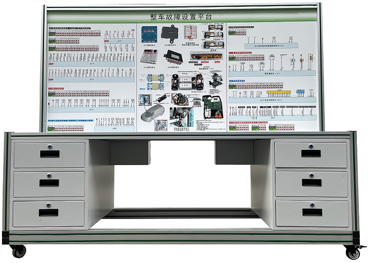 故障設置與檢測連接平臺采用純電動汽車原車插接器實物制作,無損原車部件與線束,包括電池管理系統(tǒng)、電機控制器、交流充電單元、無鑰匙進入系統(tǒng)、車身控制系統(tǒng)、車身電氣系統(tǒng),網(wǎng)關,車門電腦系統(tǒng)插接器及專用線束,通過專用線束與車輛連接,可直接在檢測臺面板上檢測系統(tǒng)電路元件的電信號,如電阻、電壓、電流、頻率信號等,可完成電動汽車整車系統(tǒng)(電池管理系統(tǒng)、電機控制器、交流充電單元、無鑰匙進入系統(tǒng)、車身控制系統(tǒng)、車身電氣系統(tǒng),網(wǎng)關,車門電腦系統(tǒng))相關的實驗實訓內容。適合于"新能源汽車檢測與維修"整車的實訓教學。