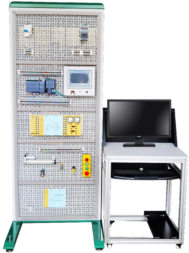 采用模塊組合式結(jié)構(gòu),含開關(guān)量、模擬量、變頻調(diào)速、觸摸屏、通信模塊等,配套工控組態(tài)監(jiān)控軟件,實現(xiàn)仿真化、信息化實訓(xùn)教學(xué)。