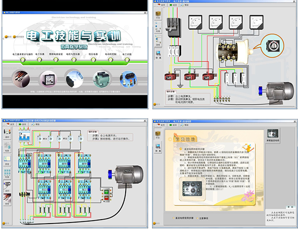 采用3D虛擬仿真技術(shù),用戶可以360度無死角觀察器件外觀細(xì)節(jié);采用多媒體演示動畫展示各種元器件的結(jié)構(gòu)、功能、工作原理及控制方式;通過具有交互性的模擬仿真動畫,進(jìn)行電路的組裝調(diào)試和故障排除,實(shí)現(xiàn)無實(shí)物學(xué)習(xí)電工設(shè)備相關(guān)專業(yè)所涉及到的常用儀器設(shè)備、電氣檢測以及電機(jī)控制的實(shí)際操作技能和注意事項(xiàng)。包括但不限于: