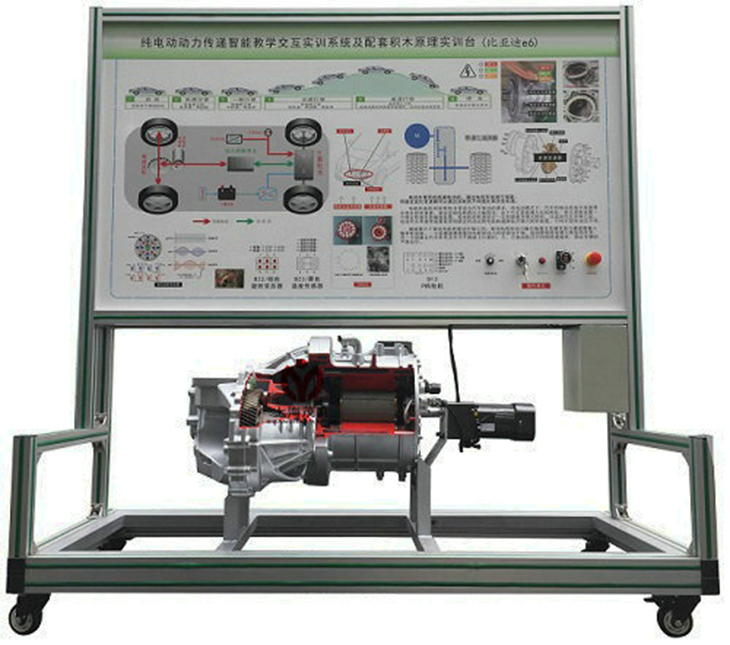 比亞迪e6純電動動力傳遞交互實訓平臺采用比亞迪e6動力傳遞交互實訓系統(tǒng)基于比亞迪e6實車動力總成和原理基礎積木擺放臺構(gòu)建而成,包括驅(qū)動電機、變速箱、P檔電機、車速傳感器、差速器、水溫傳感器等,配有經(jīng)噴涂油墨、裝配具有保護功能的檢測端子,可測量電壓,電阻,波形等信號。適用于中高職院校、技工院校、新能源培訓機構(gòu)對于比亞迪e6汽車動力總成的教學培訓。