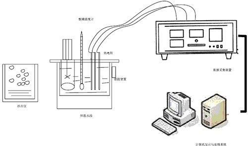 熱電偶實驗裝置主要由恒溫水浴、電位差計、熱電偶、熱電阻、冰點儀、數(shù)據(jù)采集裝置、低電勢轉(zhuǎn)換開關(guān)和標準玻璃溫度計等組成。恒溫水浴上具有攪拌、加熱與溫度控制裝置,可根據(jù)要求將溫度穩(wěn)定在設(shè)定值附近。采用標準玻璃溫度計測量的溫度作為標準溫度,用于校準熱電偶和熱電阻。