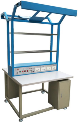 實訓臺上提供日光燈(用于照明)2個,透明的PVC板8個,可夾放原理圖等資料,另外還配備三芯雙聯(lián)暗插座4個、兩芯暗插座4個、鐵質(zhì)工具柜2個,工作臺面設(shè)有綠色防靜電桌墊,整個裝配線安全可靠。