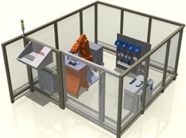 安全護(hù)欄:隔離護(hù)欄,高1000mm,框架采用2mm厚灰色棟梁鋁合金型材,鋼化玻璃10mm厚;工作站全部通透利于觀察,玻璃中間沒(méi)有隔斷;并安裝一個(gè)側(cè)開(kāi)門;門上安裝安全檢測(cè)元件,機(jī)器人自動(dòng)運(yùn)行必須在門關(guān)閉狀態(tài)下進(jìn)行;系統(tǒng)工作站安裝有3個(gè)急停按鈕,分別位于操作控制臺(tái)、模型安裝臺(tái)、隔離護(hù)欄上,以備緊急情況使用。