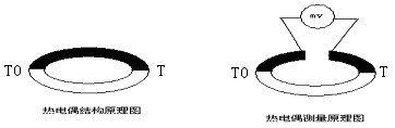 將兩種不同材質(zhì)的金屬導(dǎo)線連接成閉合回路,如果兩接點的溫度不同,由于金屬的熱電效應(yīng),在回路中就會產(chǎn)生一個與溫差有關(guān)的電動勢,稱為溫差電勢。在回路中串接一毫伏表,就能粗略地測出溫差電勢值。如圖1: