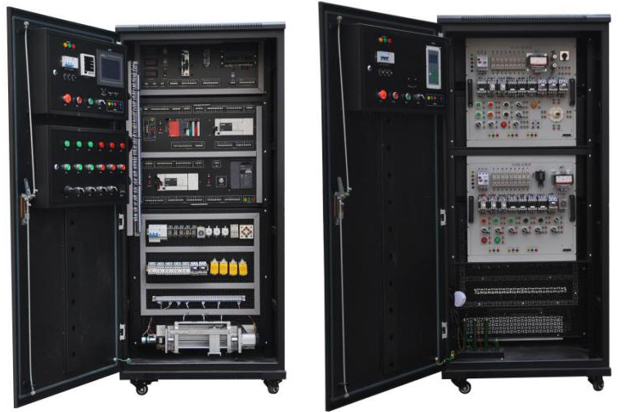 1.本裝置是由控制柜、受控對(duì)象等組成一個(gè)完整系統(tǒng),具有占地面積小、操作方便、可移動(dòng)、內(nèi)部安裝有照明設(shè)施、操作面板,各控制點(diǎn)和通訊接口均引出到專用的接線板上,使實(shí)訓(xùn)更加便捷。