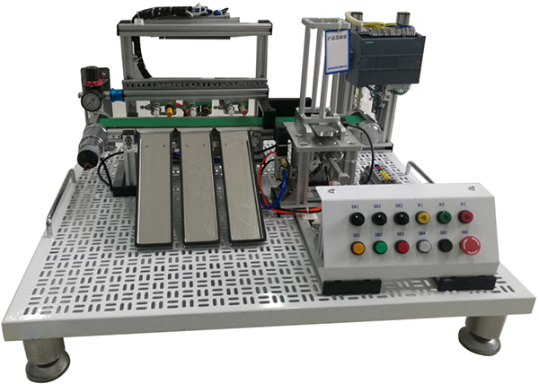 (1)系統(tǒng)包含氣動(dòng)控制、電機(jī)傳動(dòng)、位置控制、傳感器檢測(cè)等內(nèi)容,為實(shí)際工業(yè)現(xiàn)場(chǎng)生產(chǎn)設(shè)備的微縮裝置;诙喾N傳感器的檢測(cè)的精確定位,實(shí)現(xiàn)對(duì)不同材質(zhì)、不同顏色物體的分揀?沙浞皱憻挷僮髡呦到y(tǒng)接線、機(jī)械調(diào)試安裝、軟件編程、獨(dú)立構(gòu)建控制系統(tǒng)、反饋整定、故障檢測(cè)及檢修的能力。配有空氣壓縮機(jī):靜音無(wú)油,工作電源AC220V±10%