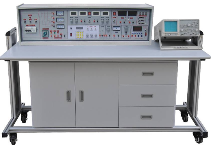 電工實(shí)驗(yàn)臺(tái)具有較完善的安全保護(hù)措施,較齊全的功能。實(shí)驗(yàn)操作桌中央配有通用電路插扳,電路板由進(jìn)口ABS注塑而成,背面裝有壓鑄而成九孔成一組的銅片,表面布有九孔成一組相互聯(lián)通的插孔,創(chuàng)新實(shí)驗(yàn)元件模塊在其上任意拼插成實(shí)驗(yàn)電路。實(shí)驗(yàn)元件制成透明創(chuàng)新模塊,直觀性好,盒蓋印有永不褪色元件符號(hào),線條清晰美觀。盒體與盒蓋采用較科學(xué)的壓卡式結(jié)構(gòu),維修、更換元件拆裝方便。元器件放置在實(shí)驗(yàn)操作桌下邊左右柜內(nèi),實(shí)驗(yàn)時(shí)取存方便,大大提高了管理水平,規(guī)劃化程度,大大減輕了教師實(shí)驗(yàn)準(zhǔn)備工作。