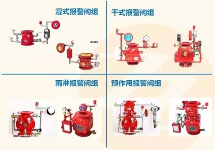 3、 各不同消防器材系統(tǒng)的區(qū)別主要體現(xiàn)在管道填充物及各組件上。其中比較常見的自動噴水滅火系統(tǒng)有濕式系統(tǒng)、干式系統(tǒng)和預(yù)作用系統(tǒng)和雨淋系統(tǒng)。