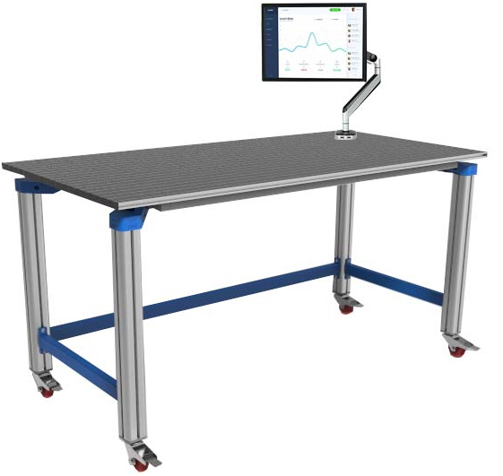 (1)采用工業(yè)鋁合金型材框架設(shè)計(jì),臺面為鋁合金型材操作板,單根型材截面20×80mm,型材槽間距40mm,桌腳截面70×70mm。